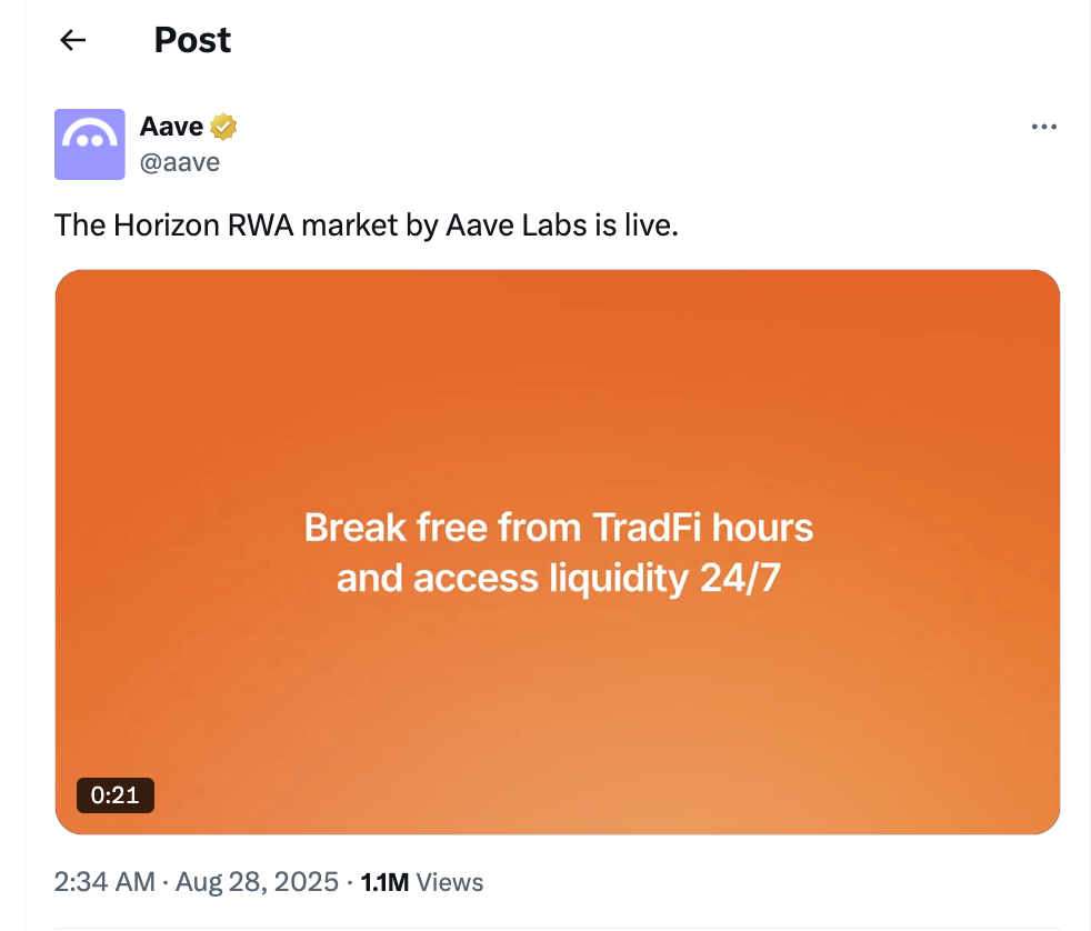 Di tahun 2025 ini, Aave mulai aktif menjajaki tokenisasi aset dunia nyata (Real-World Asset/RWA) dan menarik perhatian institusi melalui inisiatif barunya, “Horizon”.
