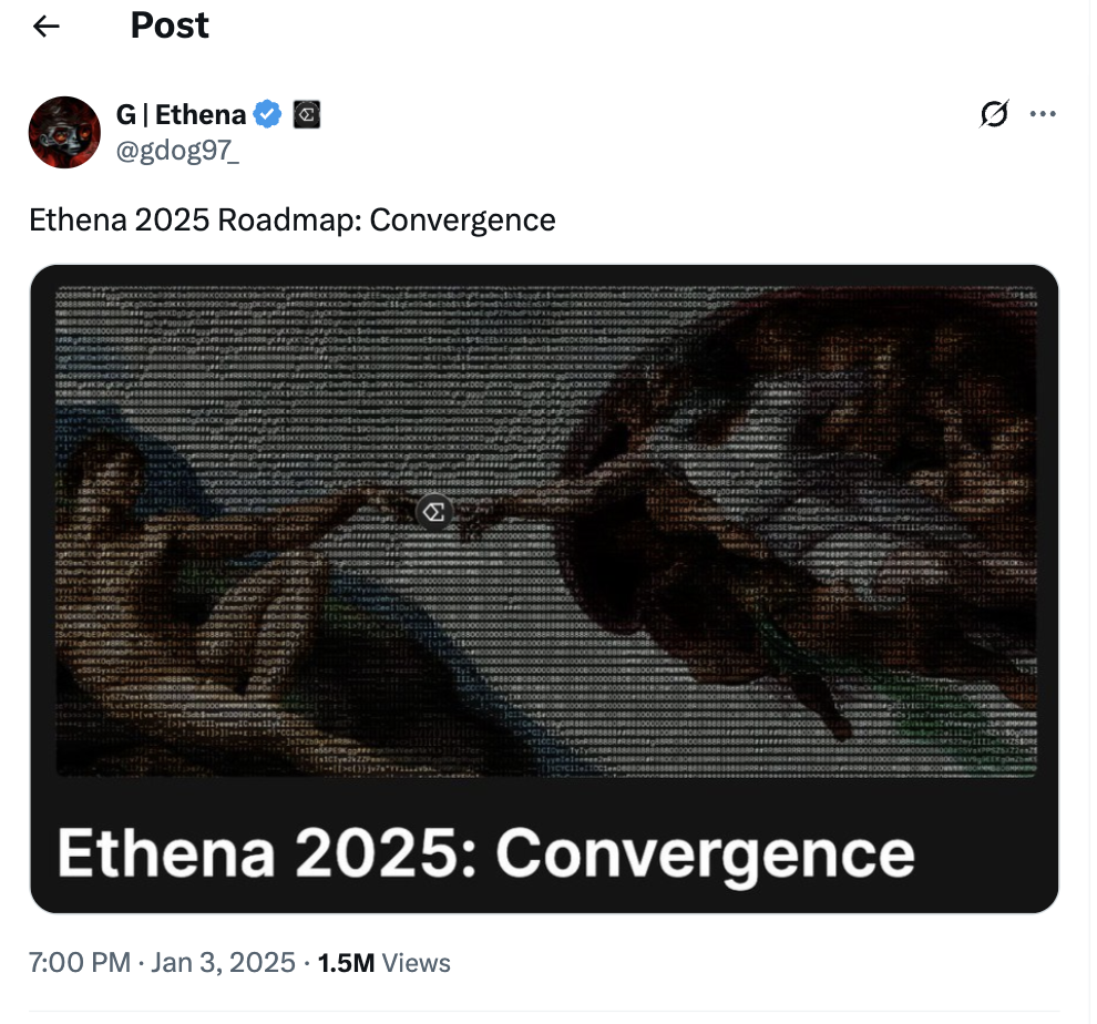 Pada 3 Januari 2025, Ethena Labs merilis roadmap terbarunya yang berisi sejumlah inisiatif besar, termasuk peluncuran aplikasi Telegram untuk pembayaran dan tabungan berbasis stablecoin sUSDe, dengan tujuan menghadirkan pengalaman layaknya neobank langsung dalam aplikasi pesan.