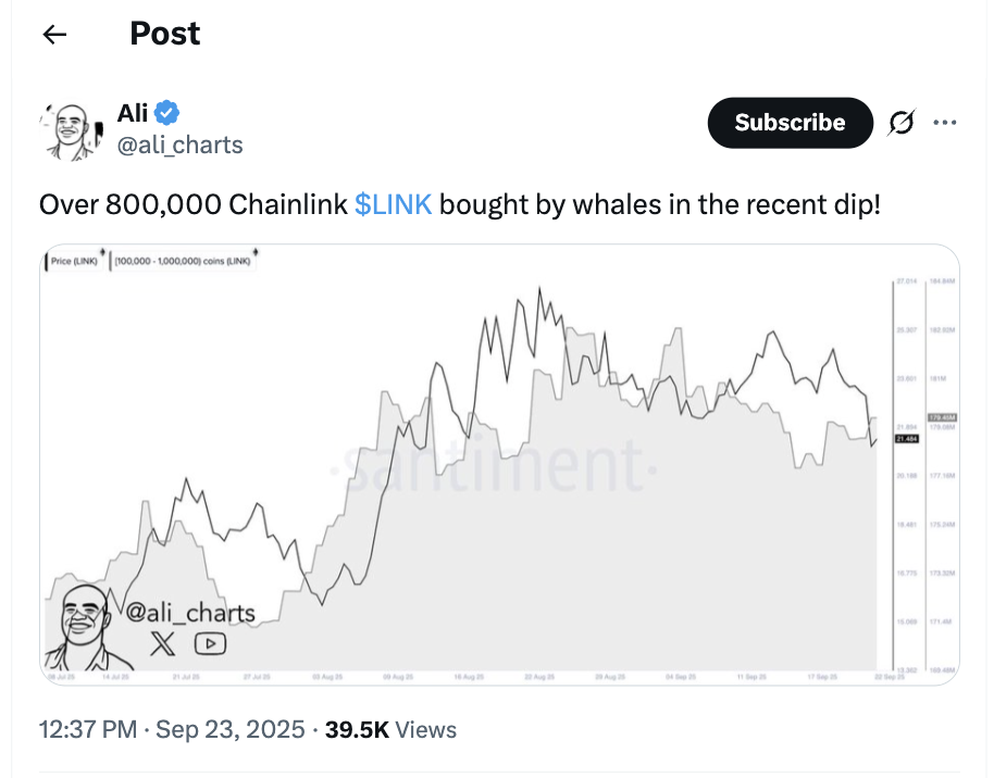 Sementara itu, menurut analis crypto Ali Martinez, pemegang besar dilaporkan mengakumulasi lebih dari 800.000 LINK selama aksi jual berlangsung. Selain itu, Martinez juga mencatat bahwa sekitar 5,5 juta LINK keluar dari bursa.