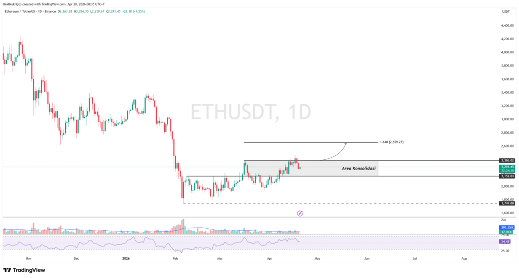 Kondisi ini mencerminkan fase keseimbangan antara buyer dan seller, di mana pasar sedang “mengumpulkan energi” sebelum menentukan arah selanjutnya. Breakout di atas $2,386 akan membuka potensi kenaikan menuju area $2.659, sementara breakdown di bawah support akan menjadi sinyal pelemahan.