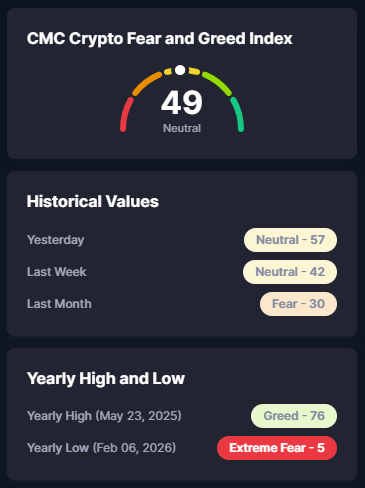 Berdasarkan indikator Fear & Greed Index, kondisi pasar saat ini berada di level 49 (Neutral). Angka ini mencerminkan keseimbangan antara rasa takut dan optimisme di kalangan pelaku pasar seiring dengan penutupan kembali Selat Hormuz yang dilakukan oleh Iran pada tanggal 18 April lalu berdasarkan laporan BBC.