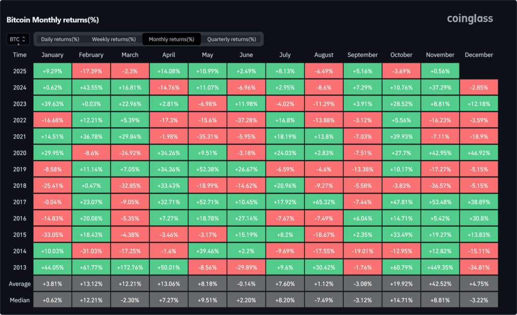 Sentimen pasar sedikit membaik (Indeks Fear & Greed: 37 → 42), sementara arus masuk institusional ke ETF Bitcoin masih tinggi. Data historis juga menunjukkan bahwa bulan November dan Desember secara musiman cenderung menjadi periode positif bagi Bitcoin.