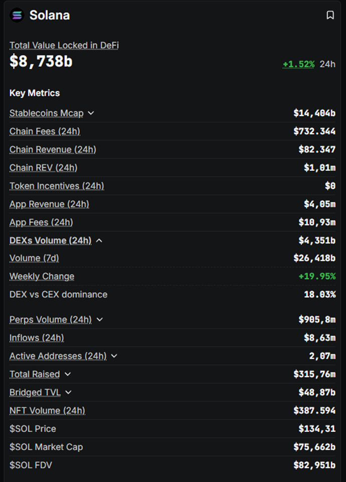 Volume dari exchange terdesentralisasi (DEX) di jaringan Solana pun naik sebesar 19.95% selama 1 minggu ke belakang. Hal ini menandakan bahwa ekosistem Solana sedang mengalami aktivitas dan recovery yang signifikan.