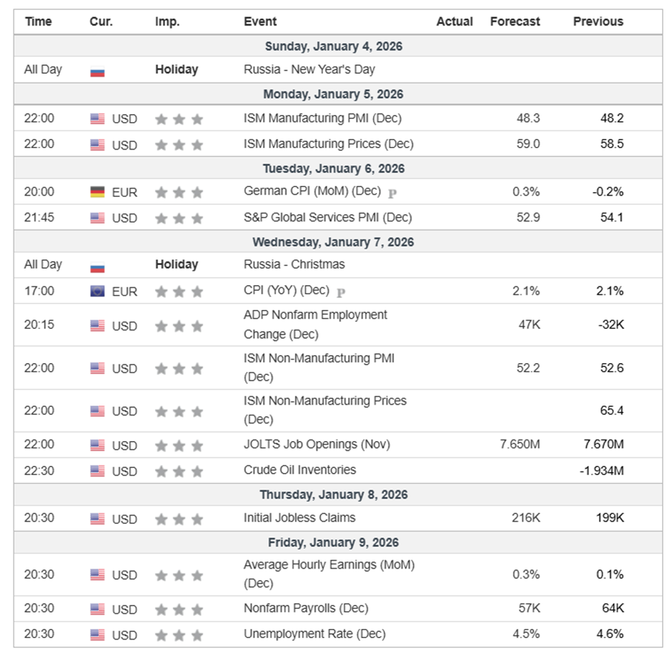 Minggu ini akan terjadi beberapa event ekonomi yang cukup penting, seperti Crude Oil Inventories yang bisa jadi terpengaruh pasca operasi militer Amerika Serikat ke Venezuela dan beberapa berita manufaktur lainnya. Namun, yang dapat mempengaruhi pasar kripto secara signifikan adalah Initial Jobless Claim yang akan terjadi di hari Kamis, 8 Januari 2026 dan Non-farm payroll yang akan terjadi di hari Jumat, 9 Januari 2026. Kita dapat mengantisipasi volatilitas pasar pada hari tersebut.