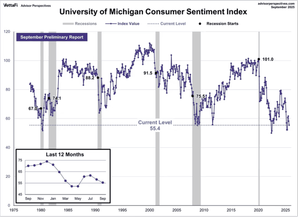 Arah ekonomi dan tekanan terhadap peningkatan inflasi cukup mengkhawatirkan berdasarkan data dari Indeks Sentimen Konsumen Universitas Michigan untuk bulan September yang menunjukkan penurunan dari Agustus sebesar 58,2 ke 55,4. Arti dari penurunan ini sebagai berikut: