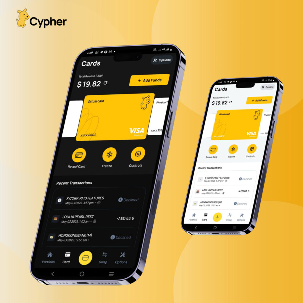 Cypher menawarkan beragam pilihan aset kripto yang dapat dijadikan aset utama untuk pembayaran di merchant yang mendukung Visa. Selain itu, mereka menyediakan virtual card yang memudahkan pengguna dalam mengelola dan menggunakan aset kripto untuk transaksi, dengan proses pembuatan kartu yang gratis tanpa biaya.