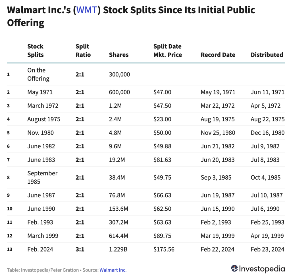 Contoh Stock Split Walmart pada Mei 1971