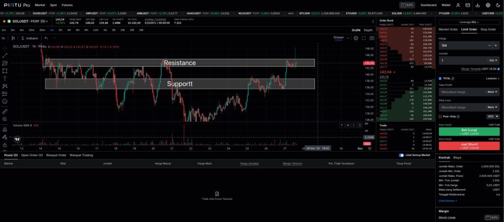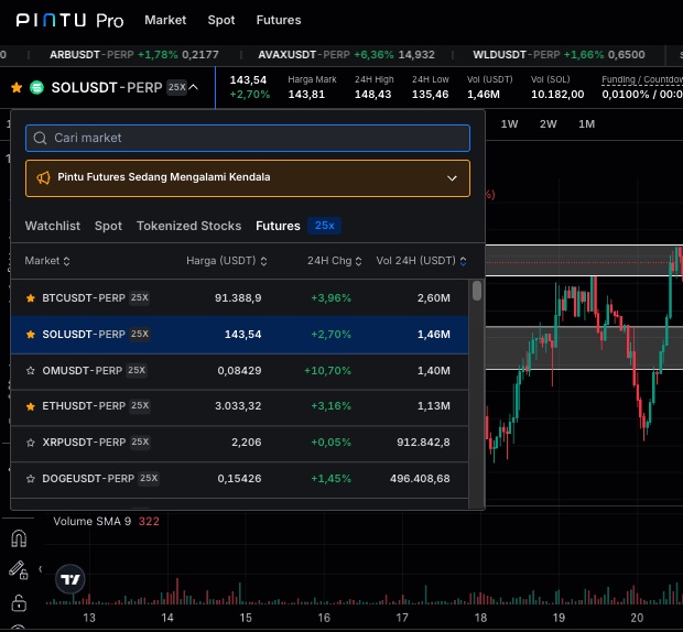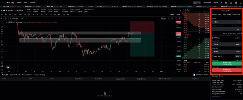 1.Buka website Pintu melalui link ini: https://pintu.co.id/pro/id/trade/futures/SOLUSDT-PERP. Di sini, kamu dapat memilih kontrak yang ingin ditradingkan.