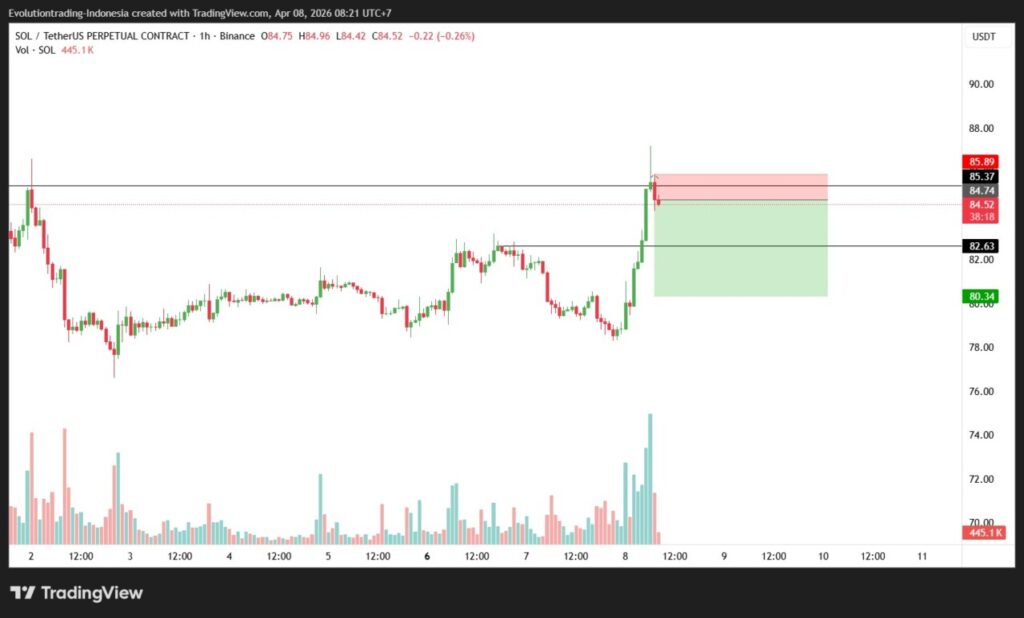 Ada kemungkinan Solana dapat mengetes area resistance become supportnya di $82, dan jika momentum bearish akibat penolakan masih berlanjut, Solana dapat turun lebih jauh hingga area $80-an.