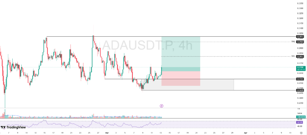The price movement of ADA showed positive momentum again after retesting the $0.2591 support. The buying pressure that emerged in the zone successfully prompted a price reversal and triggered a short-term rebound phase.