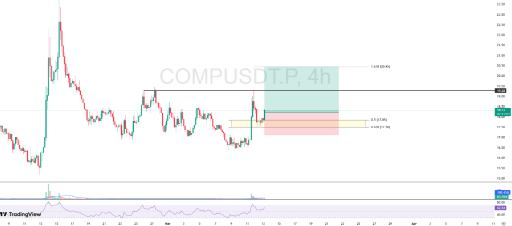 COMP’s price decline began to subside after touching harmonic support in the range of $17.50-$17.85, which also coincided with the golden pocket Fibonacci retracement. The buying reaction that appeared in that area indicated a fairly strong demand zone.