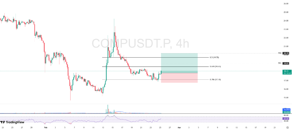 COMP’s price movement showed a positive response after bouncing off the harmonic support at $17.10, which until now has remained the main defense area from selling pressure.