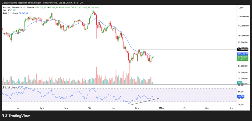 After a “brutal” decline since October 10, 2025, Bitcoin was seen consolidating for quite a while in the area around $84,000 and $94,000 for more than 1 month from November 21, 2025, to today, December 22, 2025.