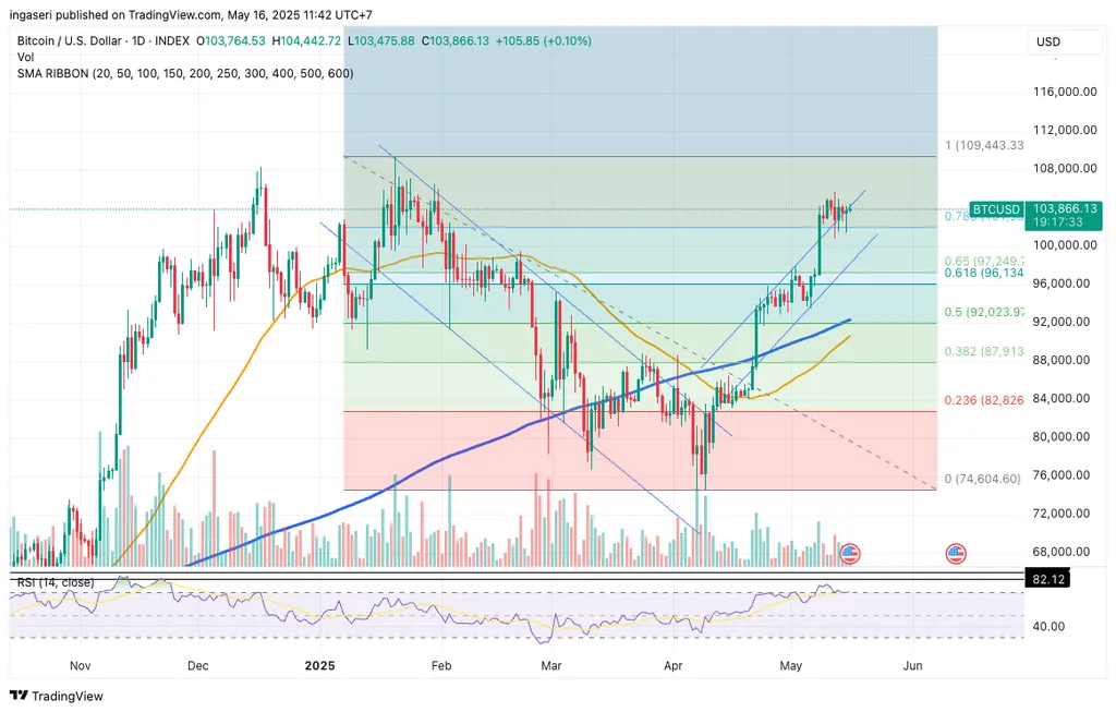The crypto market, particularly Bitcoin (BTC) and Ethereum (ETH), is showing an upward trend driven by substantial inflows into exchange-traded funds (ETFs). On May 16, BTC spot ETFs recorded a net inflow of $608.4 million. From a technical perspective, BTC remains on a bullish track. Check out the full analysis from the Pintu’s Trader Team.