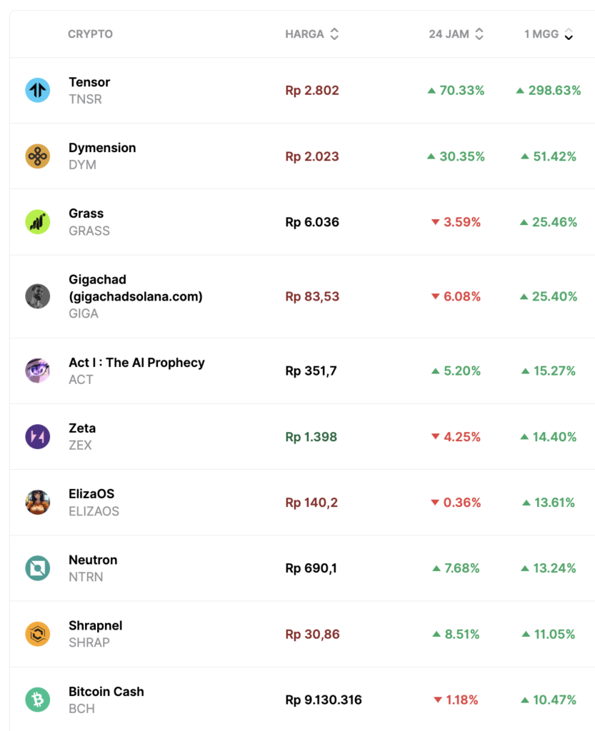 Crypto Performance in the Last Week