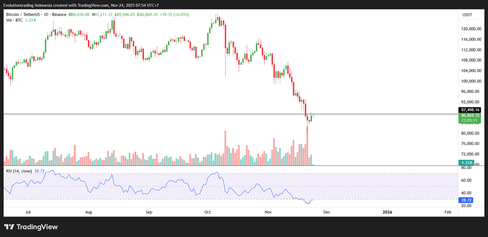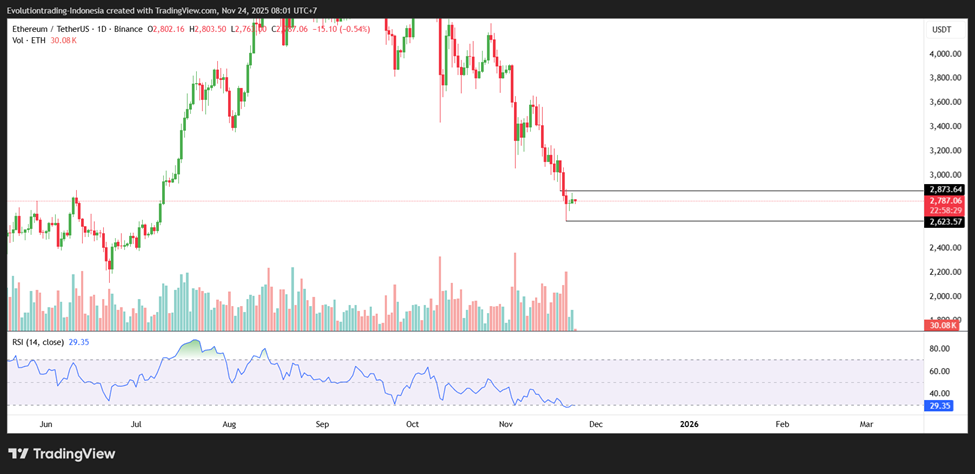 Unlike Bitcoin, Ethereum shows weaker momentum when viewed from the formation of candlesticks on the 1-day timeframe. This is also reinforced by the RSI indicator which did not form a higher high.