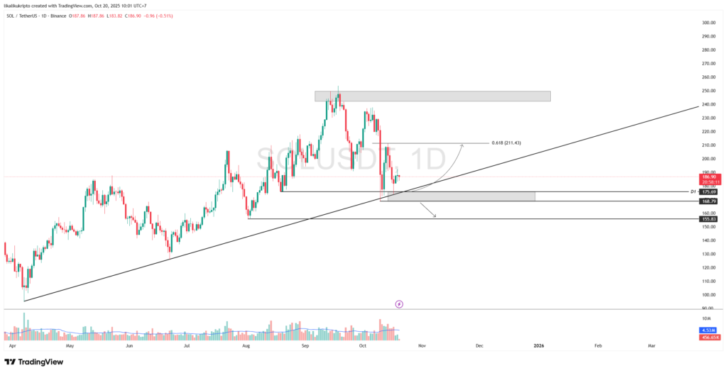 The $168.79 – $175.69 support zone is the pivot level to watch. SOL’s ability to hold above this zone will open up opportunities for a recovery rally towards $211.43. However, failure to hold this crucial level will indicate a potential trend shift towards bearishness with a downside target of $155.83.