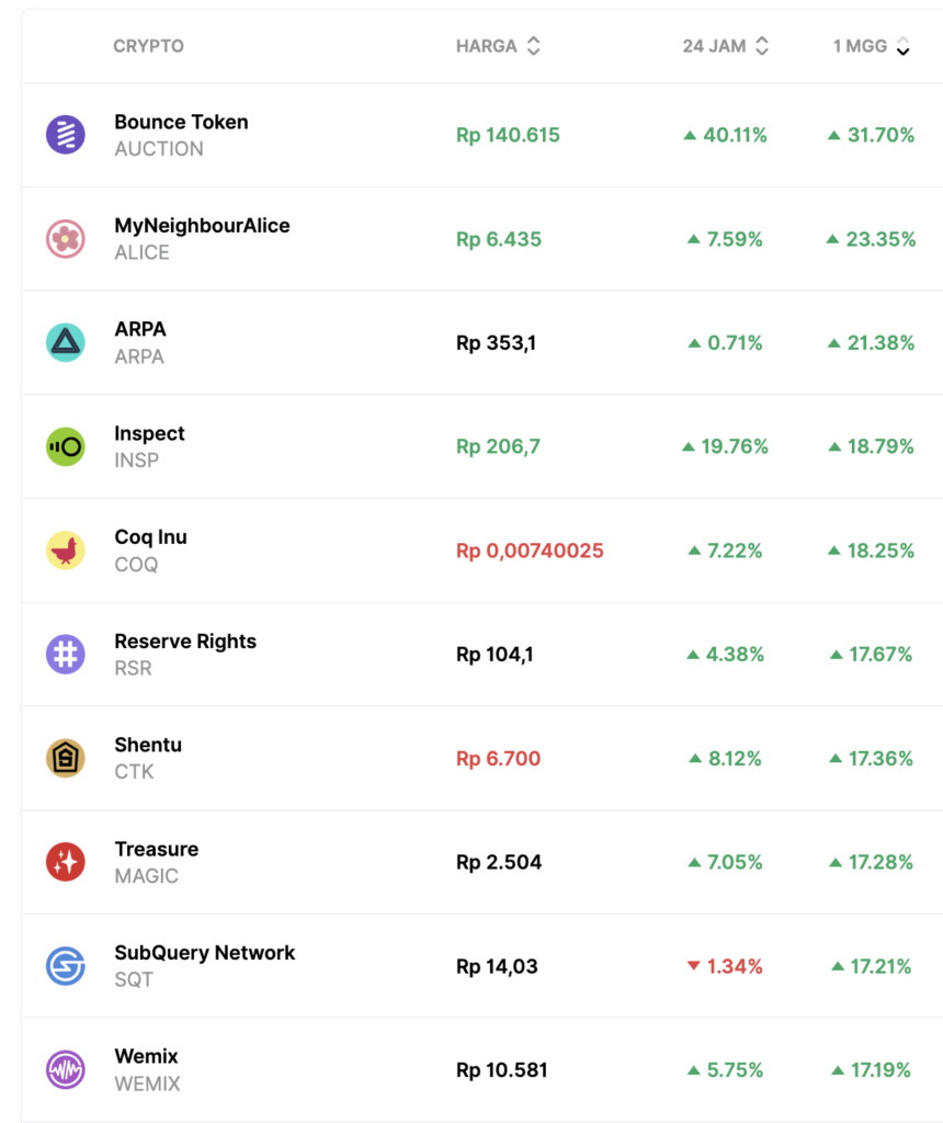 • MyNeighborAlice (ALICE) +22.75%