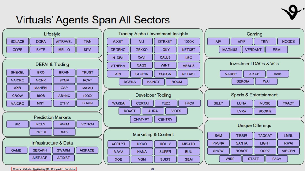 - 💡 Virtuals Protocol: Infrastructure for creating AI Agents with various functions and characteristics.
