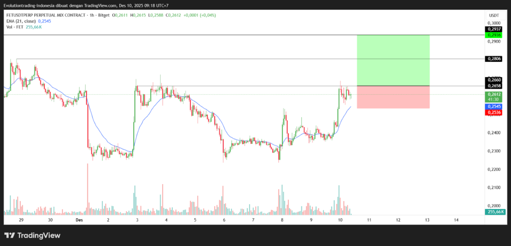 FET needs confirmation i.e. a breakout from its resistance level at $0.2660 to continue its rise which could reach $0.293.