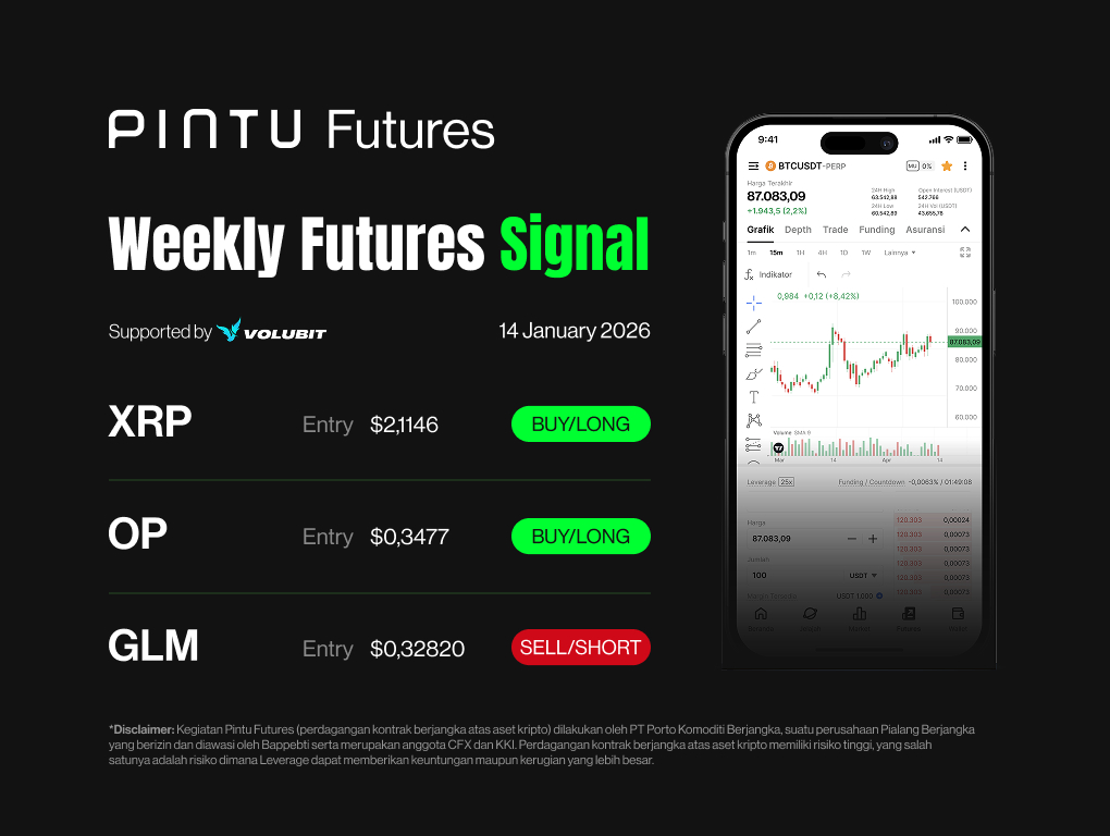 *Disclaimer: Pintu Futures activities (trading futures contracts on crypto assets) are carried out by PT Pintu Kemana Saja (Digital Financial Asset Trader), a Futures Brokerage company licensed and supervised by Bappebti and a member of CFX and KKI. Trading futures contracts on crypto assets me