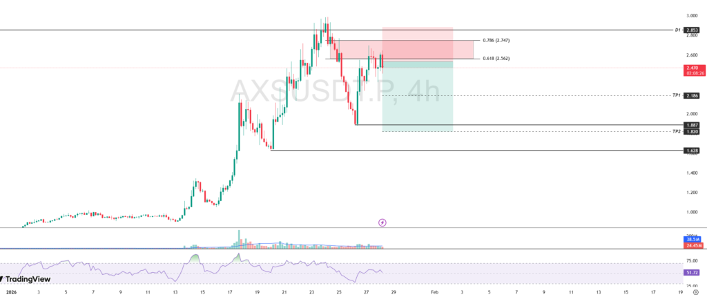 If the price of AXS moves below the full retracement area again, the price structure has the potential to form a lower high (LH), which indicates the risk of further price decline. In that scenario, the potential support area is at $1,887 as the next correction target.