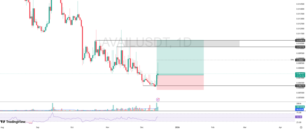 AVAIL’s price movement is showing recovery signals after selling pressure was successfully contained at a crucial support area that coincides with the lowest closing level on December 2, at IDR 103 ($0.006210). This area acts as a fairly solid support, characterized by the entry of significant buying pressure.