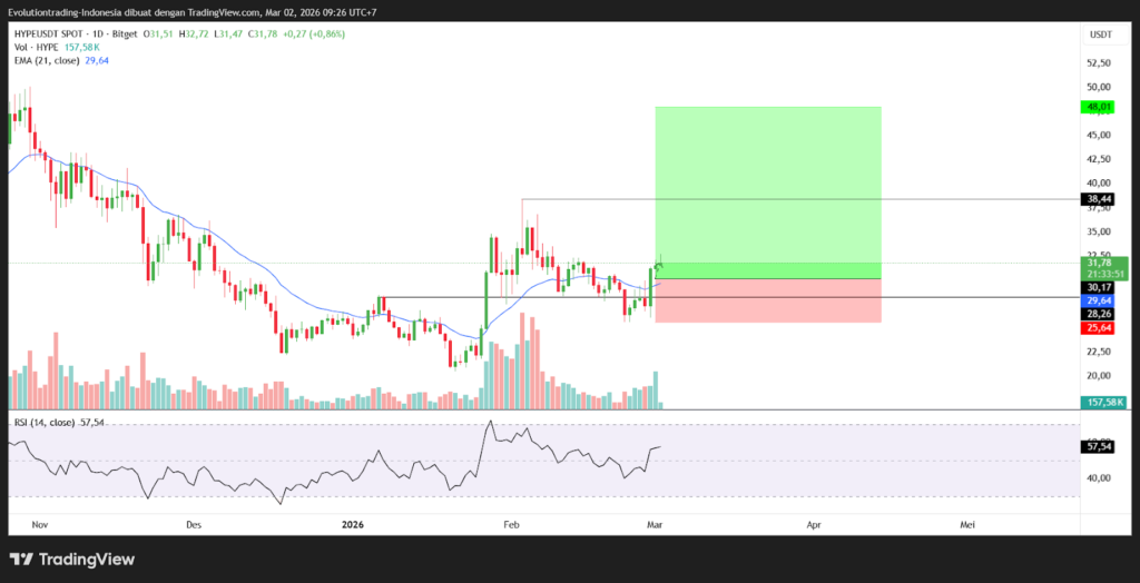 - Entry: $31 – $31.86 (Rp521,575 – Rp536,044)
