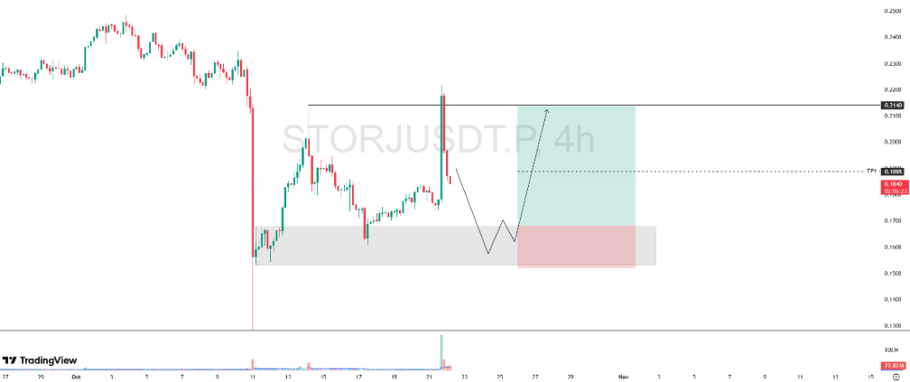 STORJ ‘s price movement showed a strong rejection at the $0.2140 resistance area, which was the upper limit of the previous recovery trend. Selling pressure at this level triggered a price correction that is still ongoing today.
