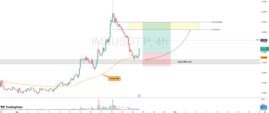 IMX’s rebound is expected to gain momentum with an upside target toward the golden pocket of the Fibonacci Retracement, in the range of $0.8121–$0.8488.