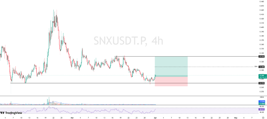 Penurunan harga SNX terlihat mulai mereda setelah berhasil bertahan di area horizontal support pada level $0.2270. Area ini menjadi titik krusial yang menahan tekanan jual sebelumnya.