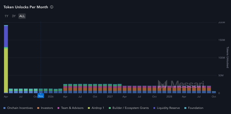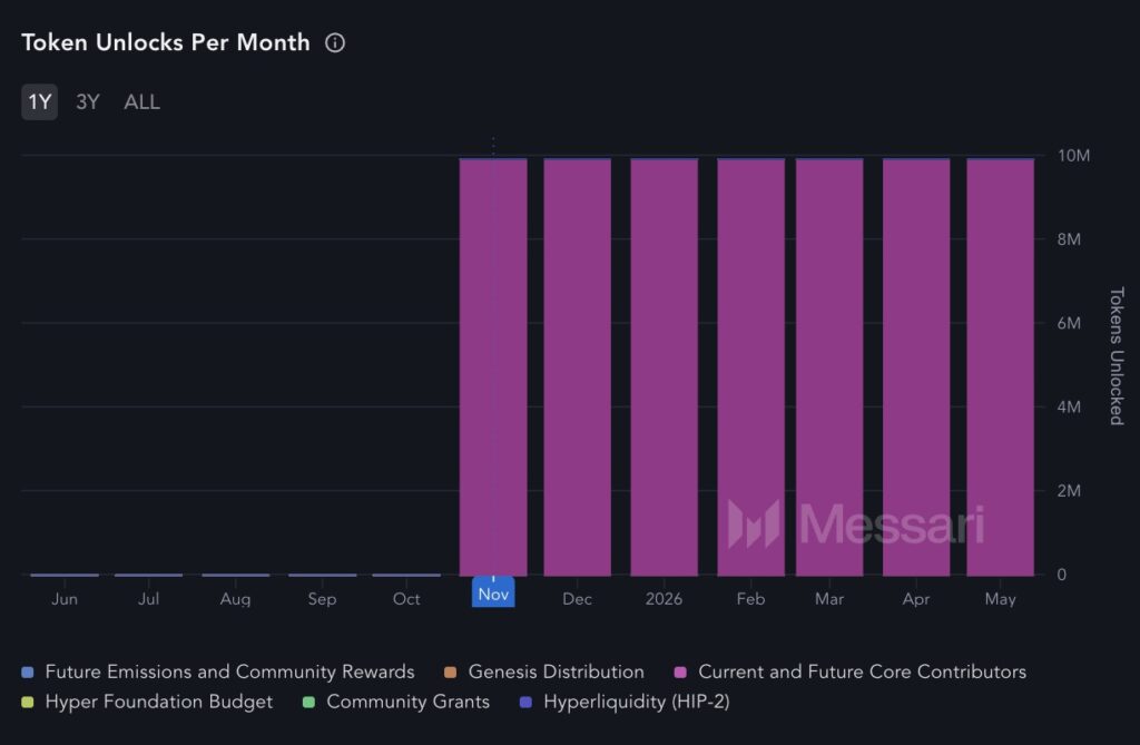 Sejauh ini, Hyperliquid memiliki sentimen positif yang cukup besar dari komunitas dan menunjukkan posisinya sebagai pemimpin perpetual DEX — baik dari sisi pendapatan yang terus bertumbuh maupun reputasi teknis yang kuat. Namun, penting untuk dicatat bahwa Hyperliquid masih memiliki jadwal token unlock yang cukup besar, dengan sekitar 9,92 juta koin atau setara $329 juta yang akan dirilis setiap bulan hingga Mei 2026.