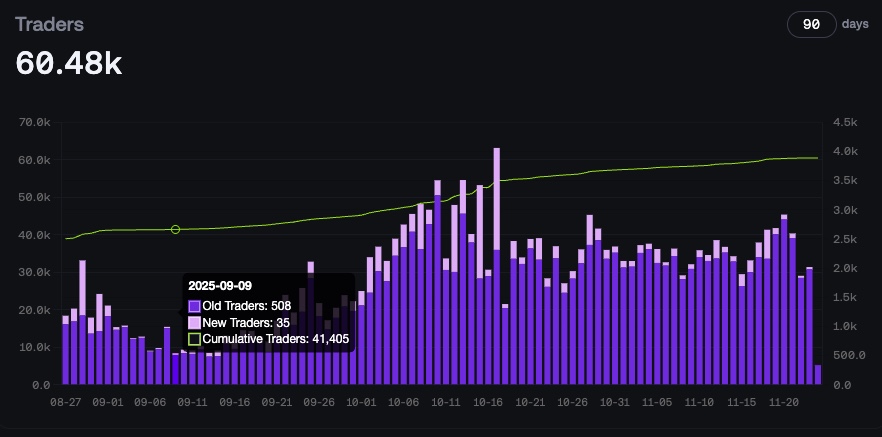 Dari sisi pertumbuhan, Avantis telah mencatat total 60.480 pengguna. Volume trading yang meningkat pada tengah bulan Oktober juga terlihat sejalan dengan kenaikan jumlah pengguna lama yang kembali aktif serta pengguna baru yang terus bertambah setelah peluncuran token AVNT.