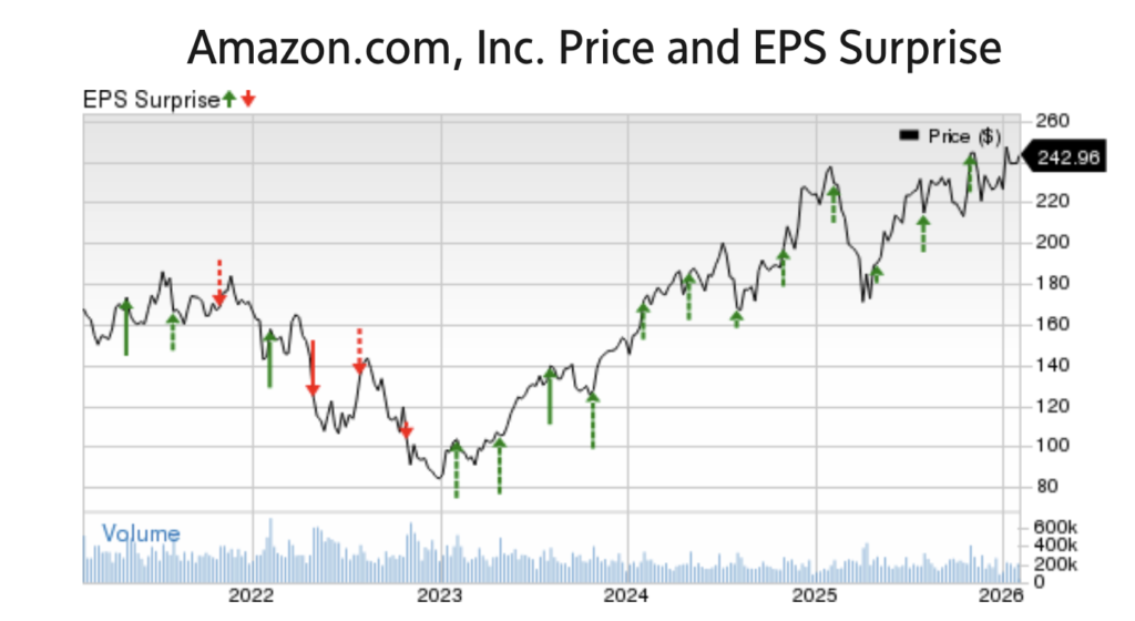 Berdasarkan data grafik di atas, Amazon menunjukkan rekam jejak yang kuat dalam mencatatkan kinerja laba di atas ekspektasi pasar. Pada kuartal terakhir yang dilaporkan, perusahaan membukukan earnings surprise sebesar 23,42%. Bahkan, dalam empat kuartal terakhir secara berturut-turut, laba Amazon selalu melampaui Zacks Consensus Estimate, dengan rata-rata kejutan laba mencapai 22,47%.