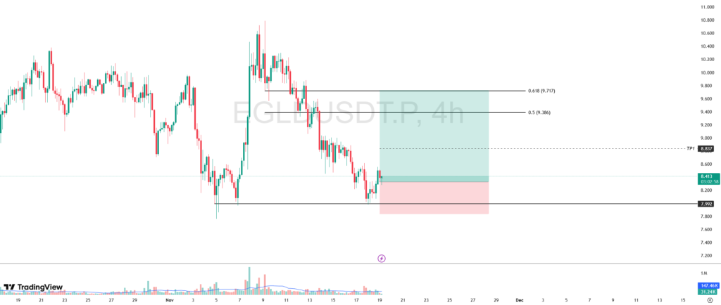 Selama harga EGLD mampu bergerak di atas level support-nya, maka laju naik berpotensi untuk menguat dengan target kenaikan utama berada di level $9.386-$9.717.